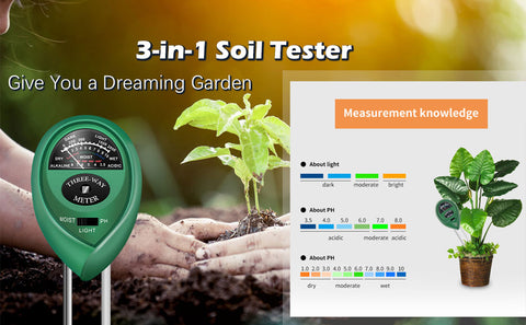 3-i-1-designen mäter effektivt och noggrant jordens fukthalt, ljus och pH-värde för att ge dig grundläggande information om jordförhållandena i trädgårdar och gräsmattor.