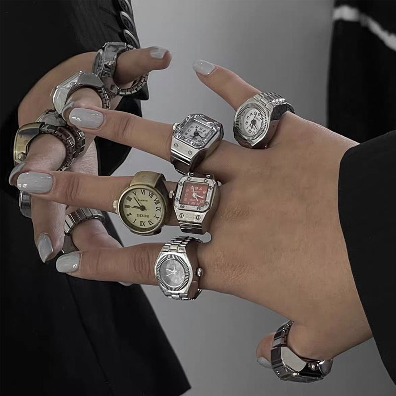 Ge din outfit det där lilla extra med vår eleganta ring med klockdesign! Detta unika smycke kombinerar stiliga klockdesigner och noggrant hantverk, för att skapa en elegant look. Perfekt för alla som söker ett sofistikerat tillbehör som är både modernt och funktionellt.