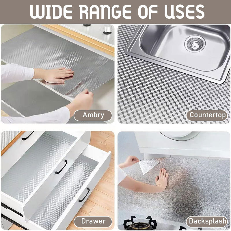 Håll ditt kök rent, säkert och snyggt med vår kraftiga aluminiumfolieklistermärke. Denna multifunktionella folie är designad för moderna kök och ditt ultimata vapen mot fett, fläckar och värmeskador.