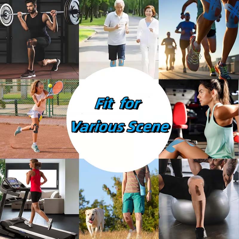 Starkt stöd och stabilitet: Kan ge starkt stöd och stabilitet i fasta positioner för att skydda knämuskelvävnaden i viss mån. Tejpen kommer effektivt att förhindra sportskador som knäskador under träning.