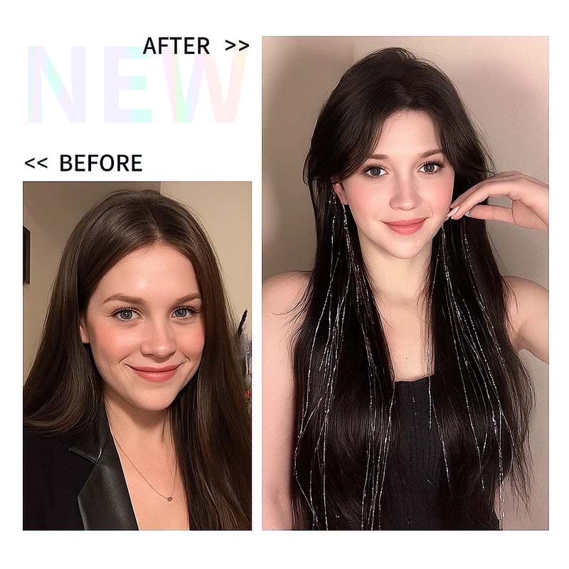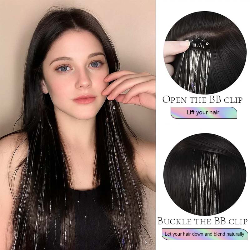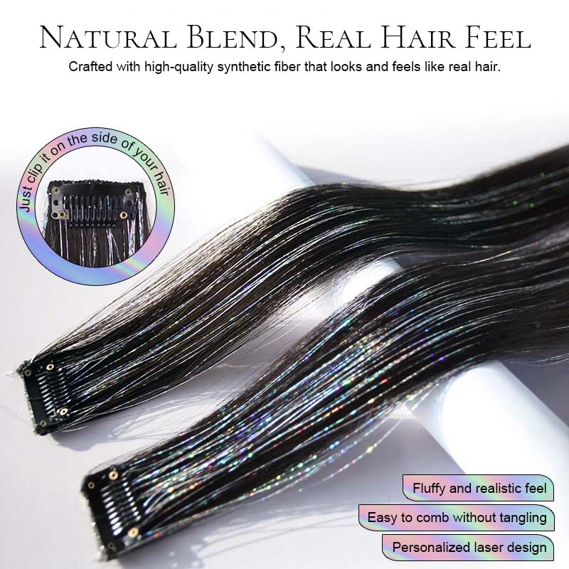 Förvandla din frisyr på några sekunder med våra laserperuker – de ultimata holografiska hårförlängningarna med clip-on som smälter sömlöst in i ditt naturliga hår för en vild, rolig och orädd look. Oavsett om det är en festival, scen, fest eller bara på gatan – är dessa hårglödande hårförlängningar det perfekta valet!