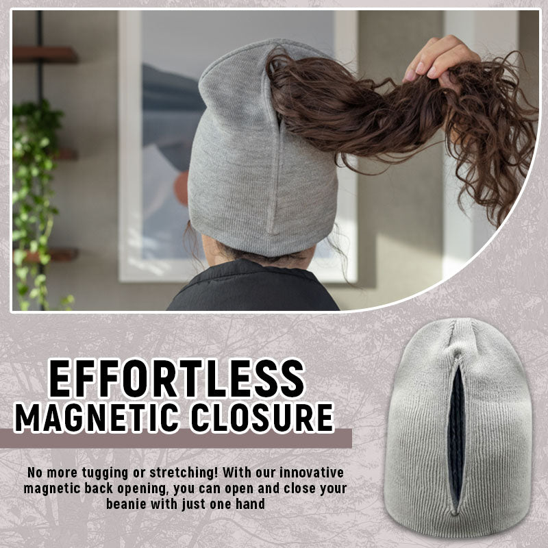 đŹ âĂntligen! En mössa som inte förstör min hĂ€stsvans. MagnetstĂ€ngningen gör den SĂ enkel att ta pĂ„ sig, Ă€ven nĂ€r jag rusar ut genom dörren. Besatt!â â Sarah M.