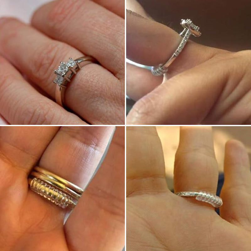 - [Transparent osynlig design, vacker och inte abrupt]: Tillverkad av högtransparent material, är den nästan osynlig efter att ha lindats runt ringens innerring, påverkar inte ringens utseende och bibehåller den ursprungliga skönheten.