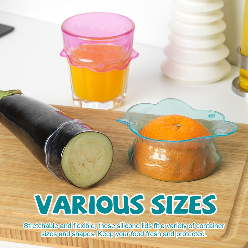 Mångsidig passform för olika storlekar: Dessa silikonlock är töjbara och flexibla, vilket gör att de passar en mängd olika behållare i olika storlekar och former. Oavsett om du behöver täcka en liten kopp, en stor skål eller något däremellan, anpassar dessa lock sig efter dina behov och håller din mat färsk och skyddad.