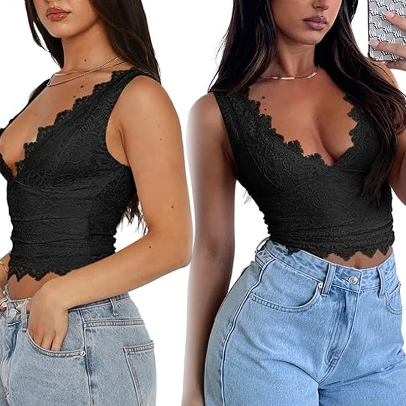 🔥 Sexigt spetslinne med ärmlös design | Y2K-glamorös stil, oemotståndlig charm ✨
