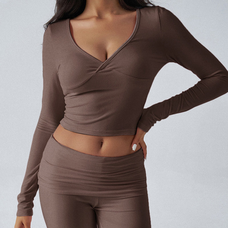 Detta stickade långärmade tvådelade set är tillverkat av mjukt, mycket stretchigt stickat tyg som formar sig efter din kropp och visar upp dina naturliga kurvor samtidigt som det ger en bekväm passform. Oavsett om det är för en morgonlöpning, yoga eller en dag ute, ger detta träningsset fri rörlighet och enkel komfort.